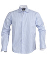 - Striped pattern as body fabric with contrast fabric under collar, placket and bottom sleeve