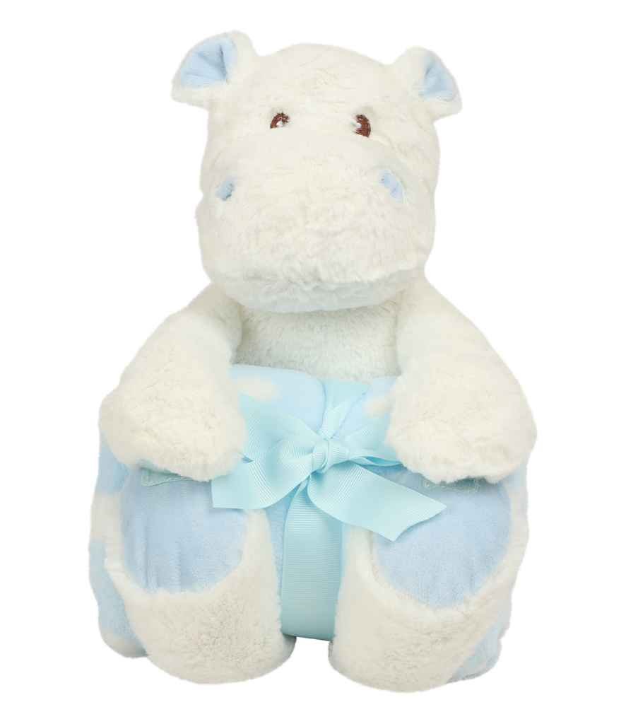 - Soft plush hippo with printed fleece blanket (87 x 73cm).