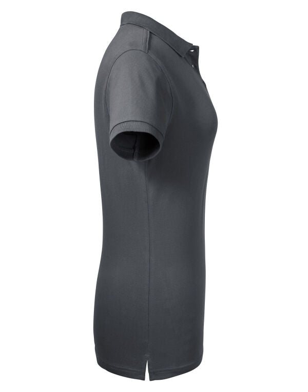 - High quality Ladies Fitted Stretch Polo now with dyed-to-match buttons